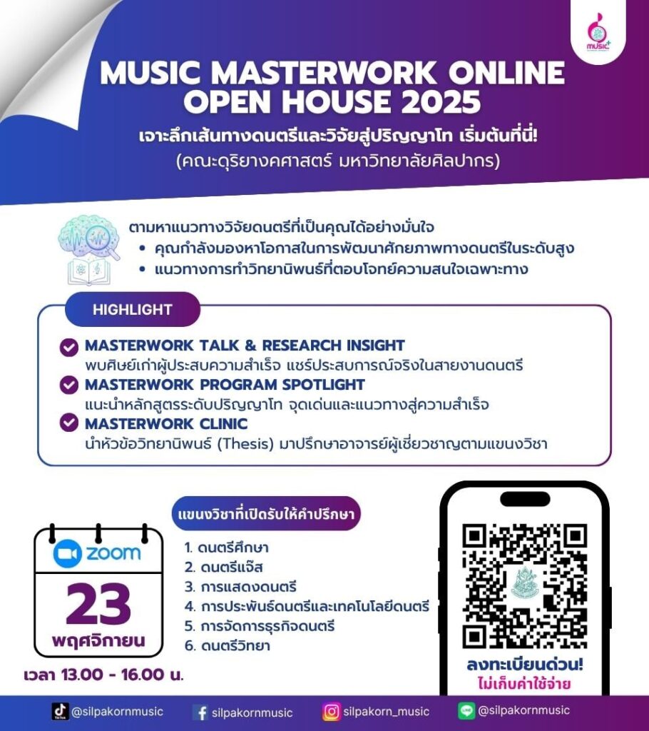 Silpakorn University Jazz Camp 2026 -- แคมป์ดนตรีแจ๊ส 4 วัน 3 คืน -- เรียนรวมวงแจ๊สและปฏิบัติเครื่องเอกแบบเน้นๆ สอนโดยคณาจารย์จากคณะดุริยางคศาสตร์ ม.ศิลปากร วันที่ 21-24 เมษายน สถานพักฟื้นและพักผ่อนกองทัพบก หาดเจ้าสำราญ จ.เพชรบุรี ปิดท้ายด้วยคอนเสิร์ต วันที่ 24 เมษายน...